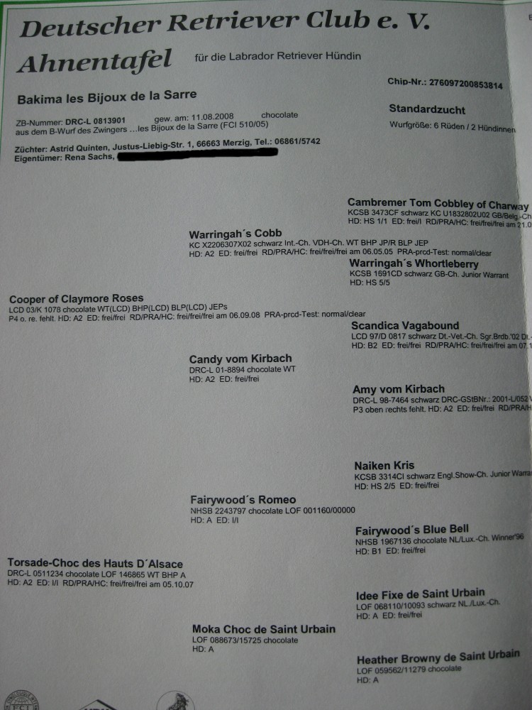 Wurftag: HD: ED: Zahnstatus: Formwert: